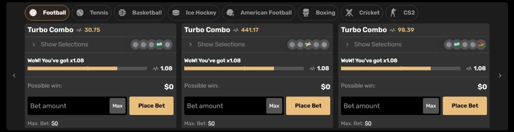 Para los amantes del deporte, Fairspin ofrece una completa plataforma de apuestas deportivas. Cubrimos más de 100,000 eventos en vivo y pre-partido en una amplia variedad de disciplinas, desde fútbol y baloncesto hasta eSports como CS:GO y Dota2. Nuestro servicio se distingue por sus cuotas competitivas y sus herramientas de análisis que te ayudan a tomar decisiones informadas.