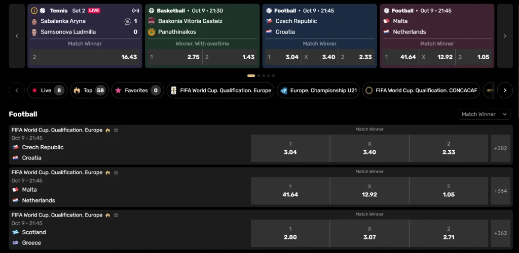 • Baloncesto y Tenis: Sigue la acción de la NBA, la Euroliga, los Grand Slams y más. Ofrecemos mercados en tiempo real que te permiten apostar en cada punto y en cada jugada crucial.